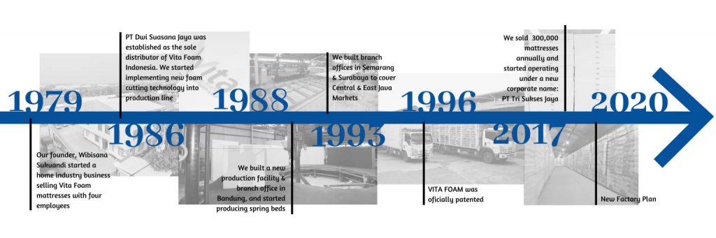 Vita Foam yang bernaung dibawah PT. Tri Sukses Jaya merupakan distributor terbesar kasur busa Inoac di Indonesia yang senantiasa memberikan kasur busa berkualitas terbaik dengan menggunakan teknologi Jepang sehingga produk yang dibuat mampu memberikan kenyamanan dan kualitas tidur yang baik bagi keluarga Indonesia.